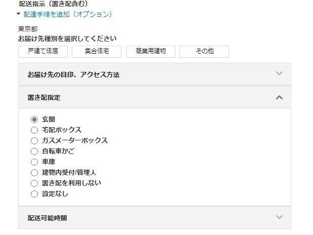 そもそもamazonが定める対象地域では置き配がデフォルト(初期設定)です。