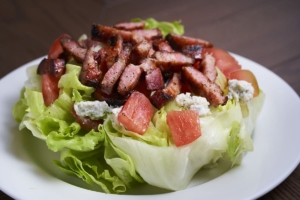 香ばしいベーコンが乗ったアイスバーグレタスのサラダ。
